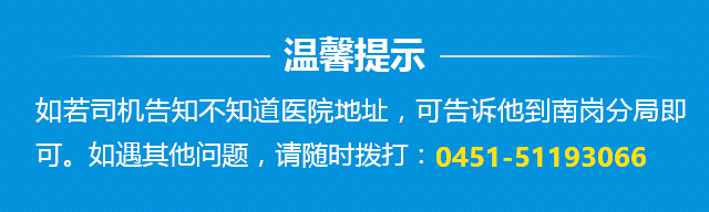 出租车:您就直接跟出租车师傅说到黑龙京科脑康医院(南岗分局旁)